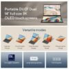 Touch screen, 14.0-inch, 3K (2880 x 1800) OLED 16:10 aspect ratio, 0.2ms response time, 120Hz refresh rate, 400nits, 500nits HDR peak brightness, 100% DCI-P3 color gamut, 1,000,000:1, VESA CERTIFIED Display HDR True Black 500, 1.07 billion colors, PANTONE Validated, Glossy display, 70% less harmful blue light, (Screen-to-body ratio)91%, With stylus support