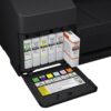 Designed to set the benchmark for professional imaging excellence, the 17″ Epson® SureColor P5000 Series offers a refined design for enhanced performance and reliability. Ideal for professional photographic, fine art, graphic design and proofing applications, it features our advanced PrecisionCore® TFP® printhead and Epson Precision Dot screening technologies, developed to work exclusively with 200 mL UltraChrome HDX® pigment ink cartridges. UltraChrome HDX, our next-generation pigment ink technology, is independently rated by Wilhelm Research for up to 200 years for color prints and up to 400 years for black-and-white prints, more than twice our previous generation of ink1. Plus, get versatile media handling with automatic switching between the high-capacity front paper cassette and the roll media feeder.